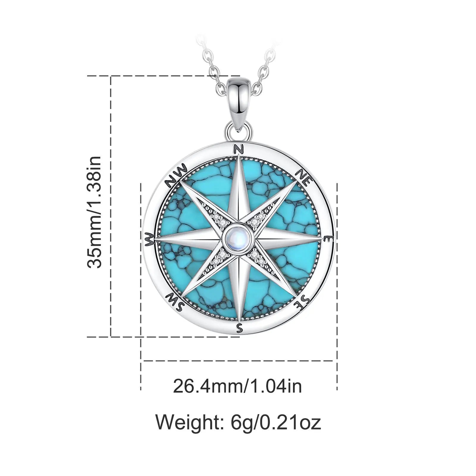 AEONSLOVE 925 Sterling Silver Compass Necklace for Women Men Vintage North Star Turquoise Pendant Nautical Jewelry Travel Gift