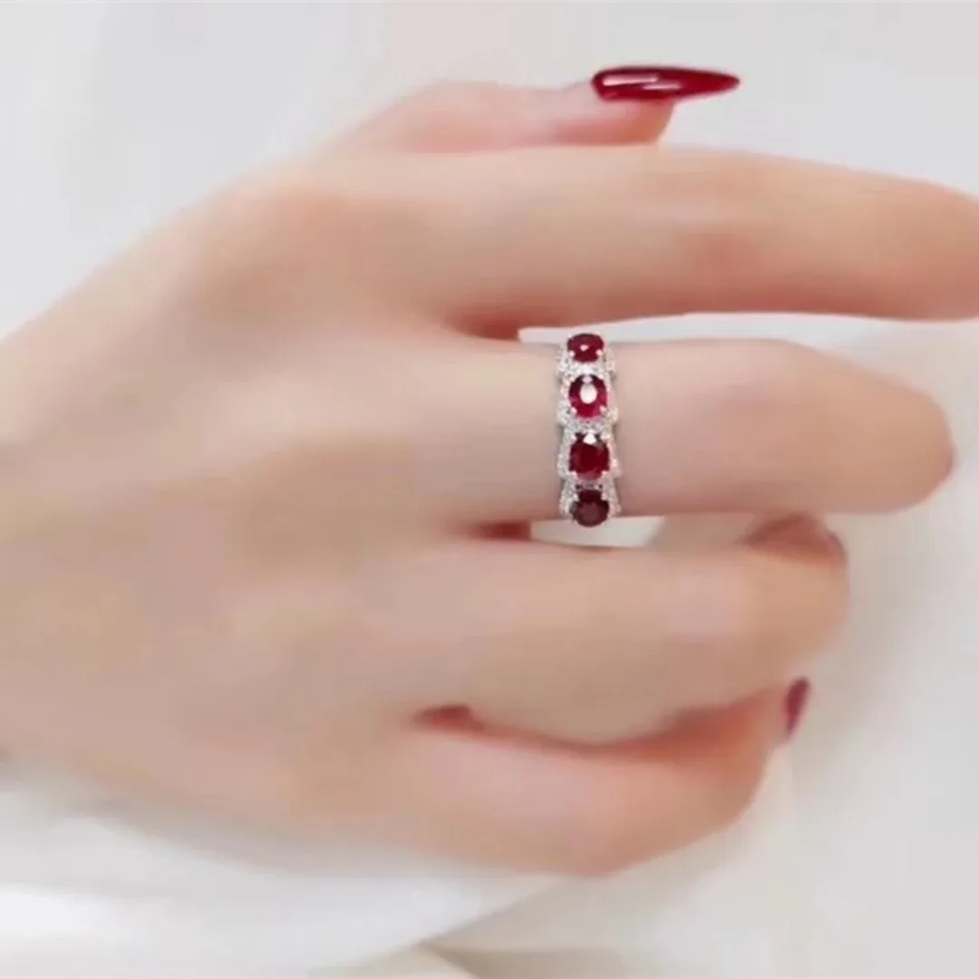 Natural Ruby Ring, 925 Sterling Silver, Simple and Exquisite Style Recommended By The Owner