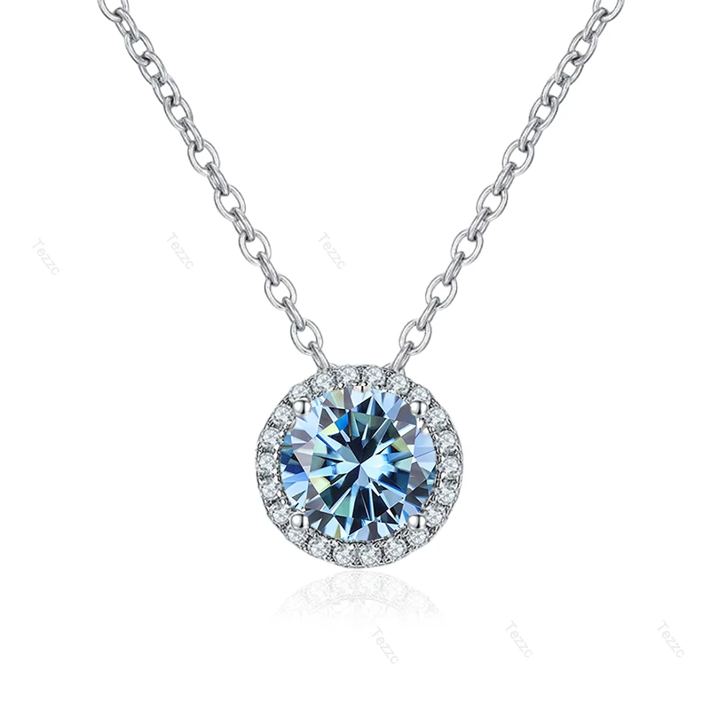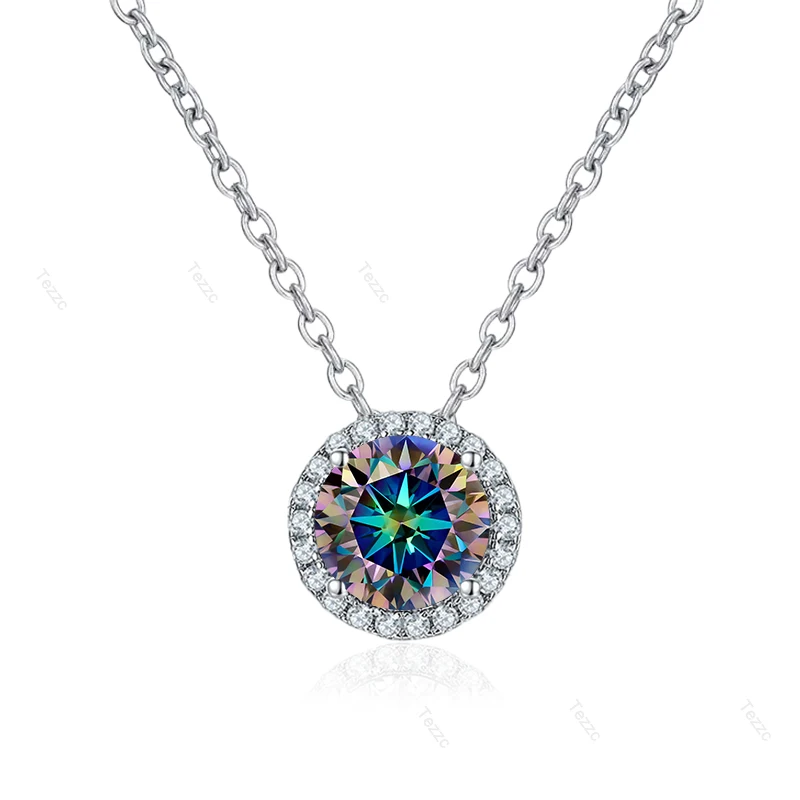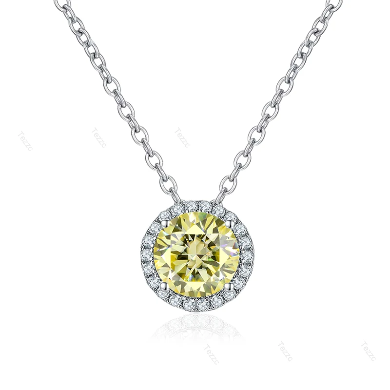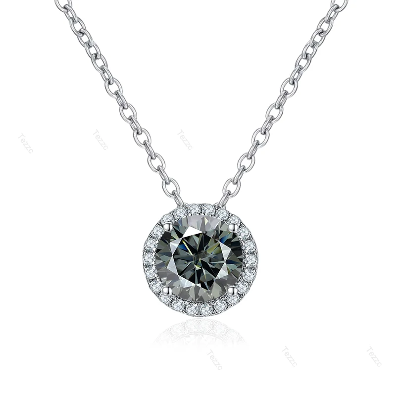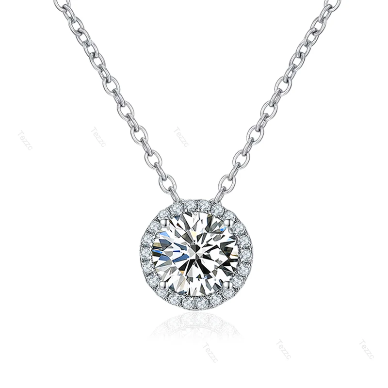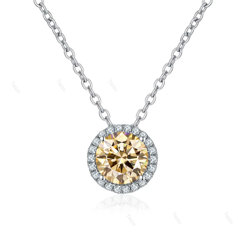 Tezzc 0.5ct 1ct Moissanite Necklace for Women 925 Sterling Silver with Gold Plated Pendant Luxury Necklaces Jewelry Wholesale