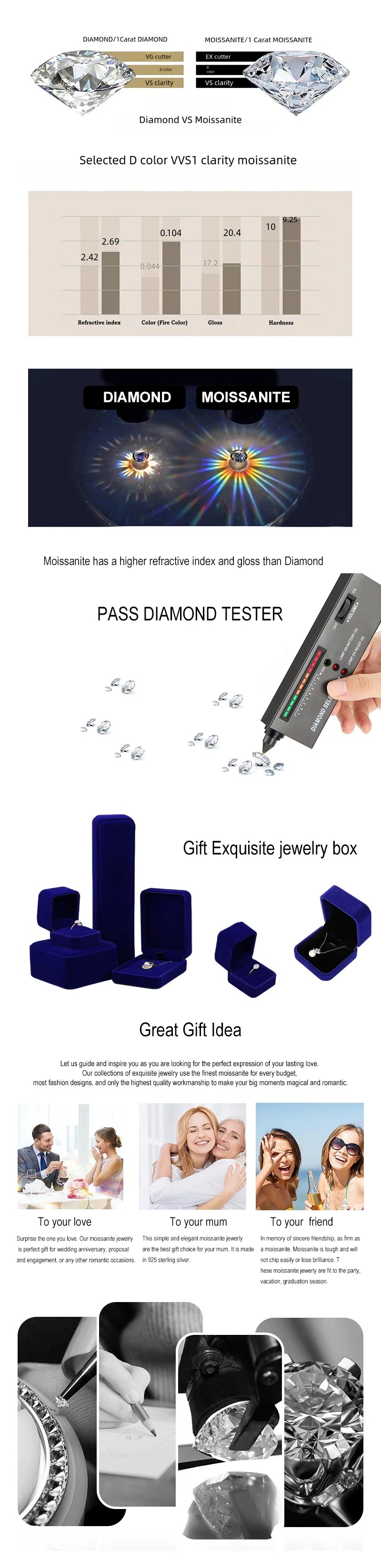 Material : 925 Sterling Silver + Main stone: Moissanite+Side stone: 5A Zircon